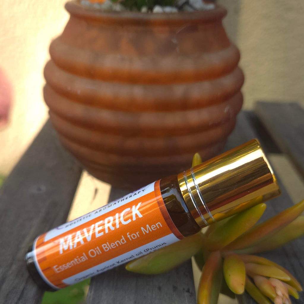 Maverick is an essential oil blend for men, easy to transport in a subtle, elegant manner. Apply on wrists and/or collar bone .